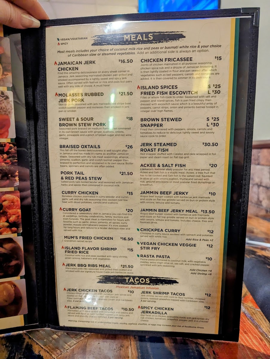- Shrimp Fry Rice: A delightful coconut milk rice dish sautéed with spicy shrimp, cabbage, bell peppers, and green onions in a signature jerk sauce. ($18.50)